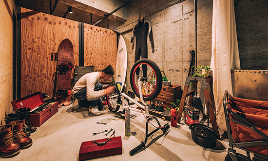 それをこの家で手に入れた。ごきげんな音楽をかけ、サーフボードや自転車のメンテなどをやっていると、朝なんかあっという間だ。