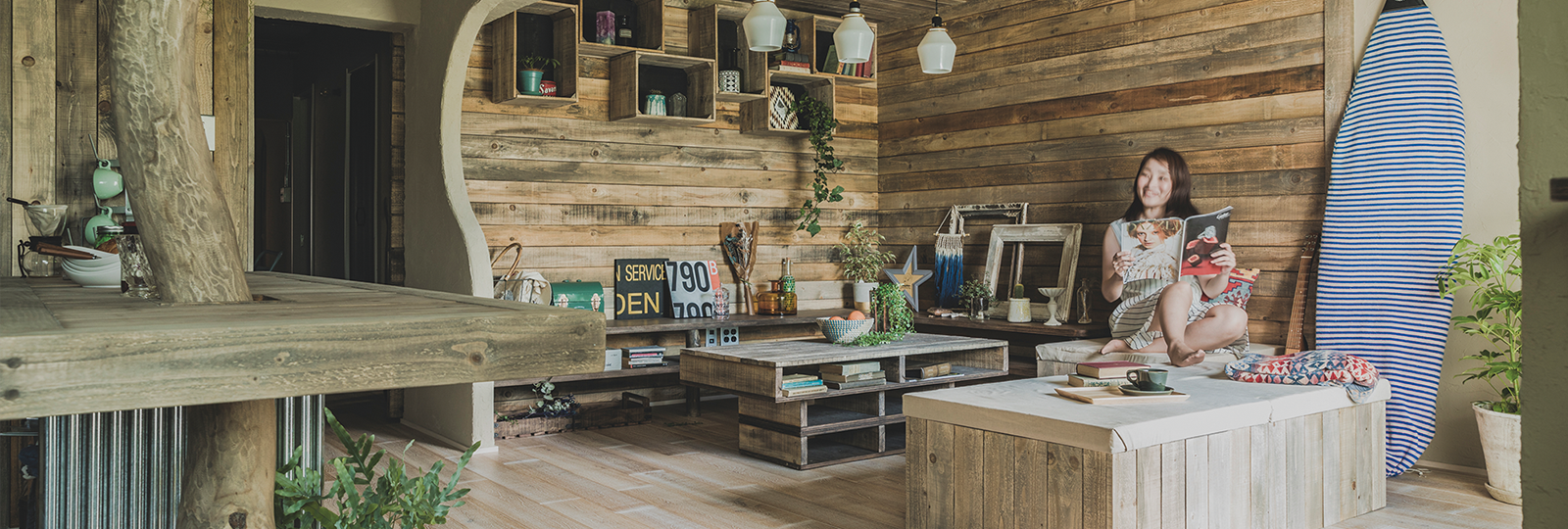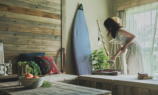 お気に入りのサーフボードを置くと、ぐっと私らしくなった。