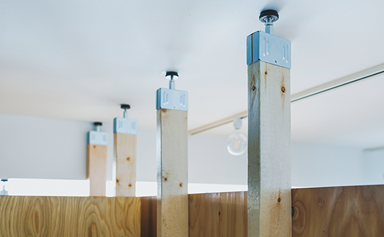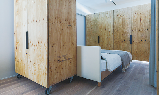 空間は移動式の間仕切りで分けることにした。
